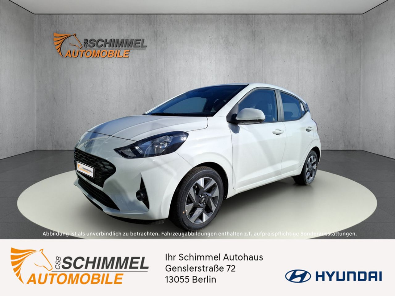 II Ein unverbindliches Kilometerleasingangebot (Bonität vorausgesetzt) der HYUNDAI Finance, ein Geschäftsbereich der Hyundai Capital Bank Europe GmbH, Friedrich-Ebert-Anlage 35-37, 60327 Frankfurt am Main, für den Hyundai i10 Select (Benziner) 46 kW (63 PS); nach WLTP, Verbrauch kombiniert (5,5 l/100 km); CO2 Emissionen kombiniert (125g/km); mögliche Energiekosten bei 15.000 km Jahreslaufleistung ( 1536,98,- ); mögliche CO2 Kosten über die nächsten 10 Jahre, niedriger Preis (937,50,-); mittlerer Preis (2156,25,-); hoher Preis (3562,50); jährliche KFZ-Steuer (82,-); Leasingsonderzahlung: 0,- ; Laufzeit: 48 Monate; mtl. Leasingraten: 195,- ; Laufleistung: 10.000 km/Jahr. Alle Preisangaben inkl. MwSt.; zzgl. Überführungskosten. Privatkundenangebot, gültig bis zum 31.12.2025. Mehr- und Minderkilometer sowie eventuell vorhandene Schäden werden nach Vertragsende gesondert abgerechnet. Über alle Detailbedingungen informiert Sie gerne Ihr teilnehmender Hyundai-Partner. Das abgebildete Fahrzeug enthält möglicherweise aufpreispflichtige Ausstattungen, die nicht Bestandteil des Leasing-Angebots sind. Änderungen und Irrtümer vorbehalten.